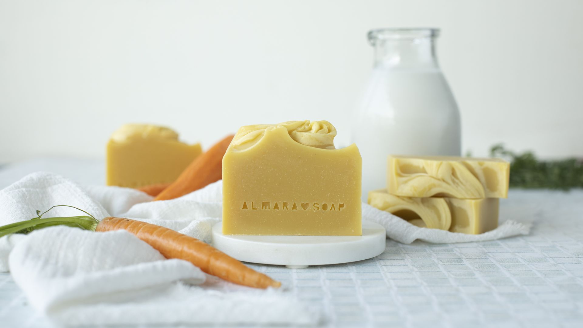 Sapone naturale Creamy Carrot è prodotto da Almara Soap con carota e latte di cocco per pelli secche, mature e sensibili.